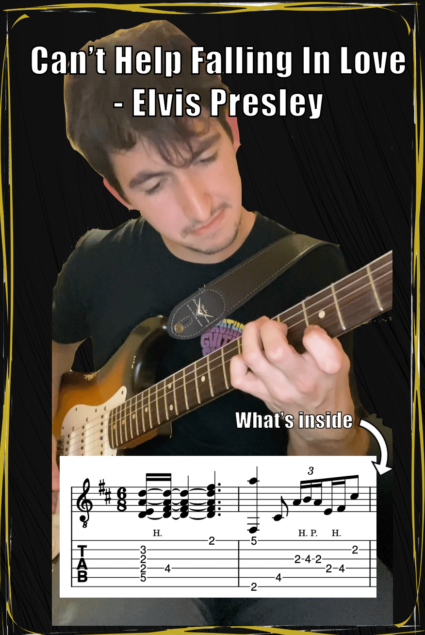 You will receive a PDF with TABs and standard notation of my arrangement of Can't Help Falling In Love by Elvis Presley! It includes the chord progression as well. The arrangement can can be found on YouTube, TikTok, and Instagram (scroll right to see clip). Enjoy :)